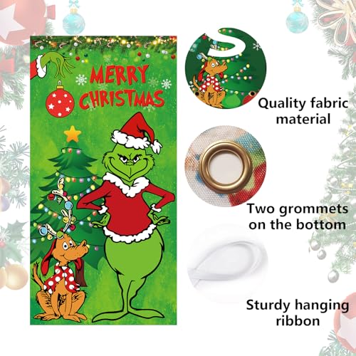 Tamaño decente: cada pancarta de decoración de Navidad mide 72 pulgadas de alto x 35.5 pulgadas de ancho, tamaño grande a llamativo. Hay 4 ojales en la parte inferior para asegurarlos mejor del viento, simplemente cuélgalos en cualquier lugar que desees.
