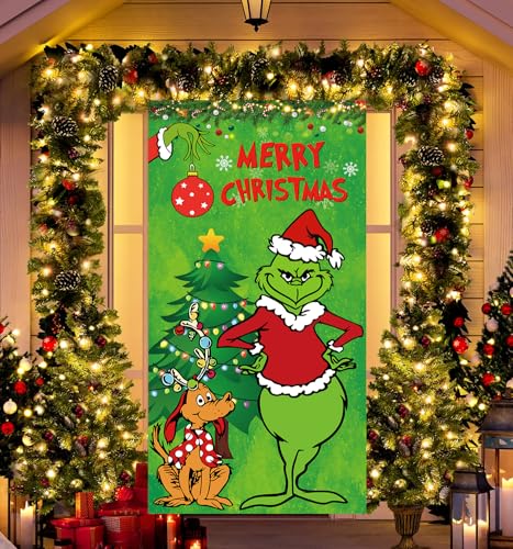 Decoraciones de Navidad, decoración de Navidad, cubierta de puerta, letrero de bienvenida para interiores y exteriores, pared para el hogar