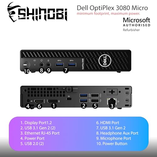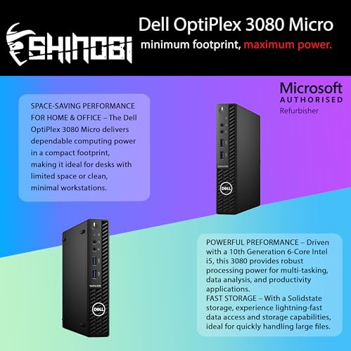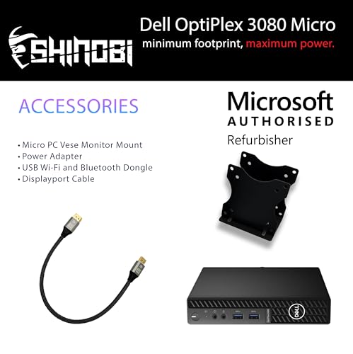 Como un restaurador autorizado por Microsoft, Shinobi PC renueva profesionalmente cada sistema a través de rigurosas pruebas y certificaciones. El OptiPlex 3080 Micro es una solución inteligente y sostenible para usuarios que buscan un rendimiento confiable en un paquete compacto.