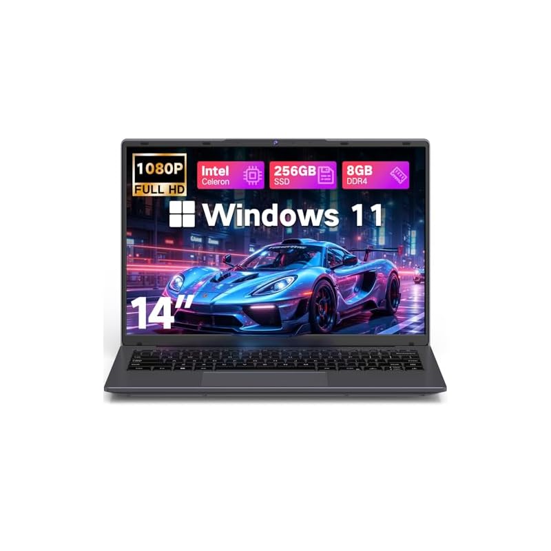 DERE Portátil de 14 pulgadas, CPU N5085, 8 GB de RAM, SSD de 256 GB | Diseño ligero para estudiantes y viajes | HDMI, Wi-Fi, Windows 11 | Computadoras portátiles tradicionales para niños, negocios y