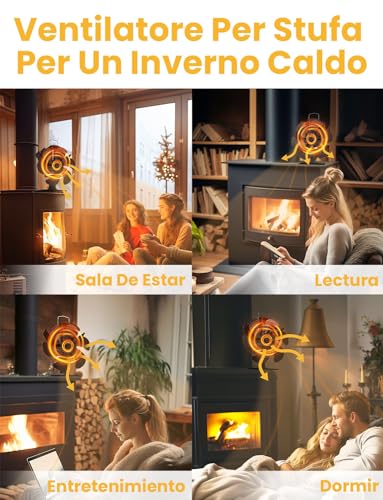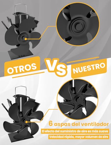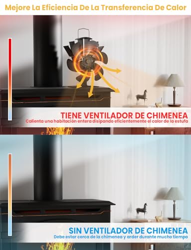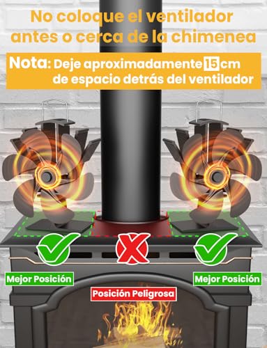 Especificaciones: DMTIVMG Ventilador de Chimenea de 6 Aspas Ventilador de Estufa Silencioso No Eléctrico y Ecológico para Estufas de Leña y Pellet