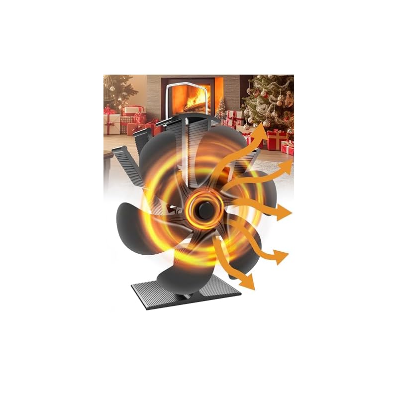 DMTIVMG Ventilador de Chimenea de 6 Aspas Ventilador de Estufa Silencioso No Eléctrico y Ecológico para Estufas de Leña y Pellet