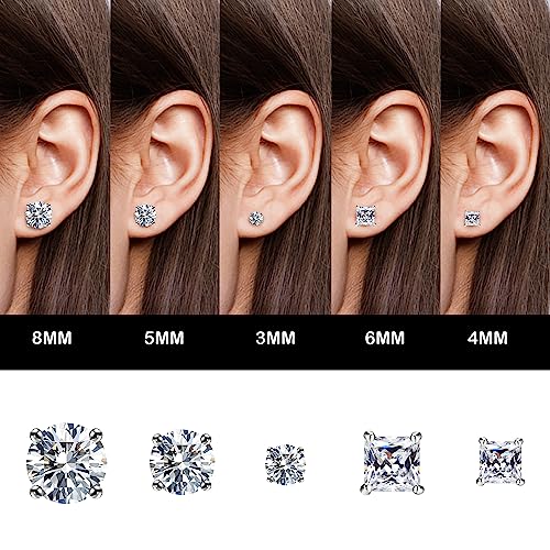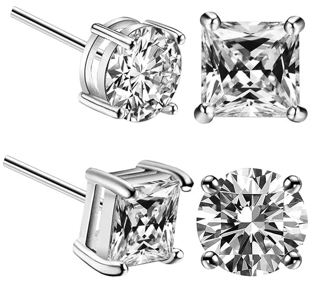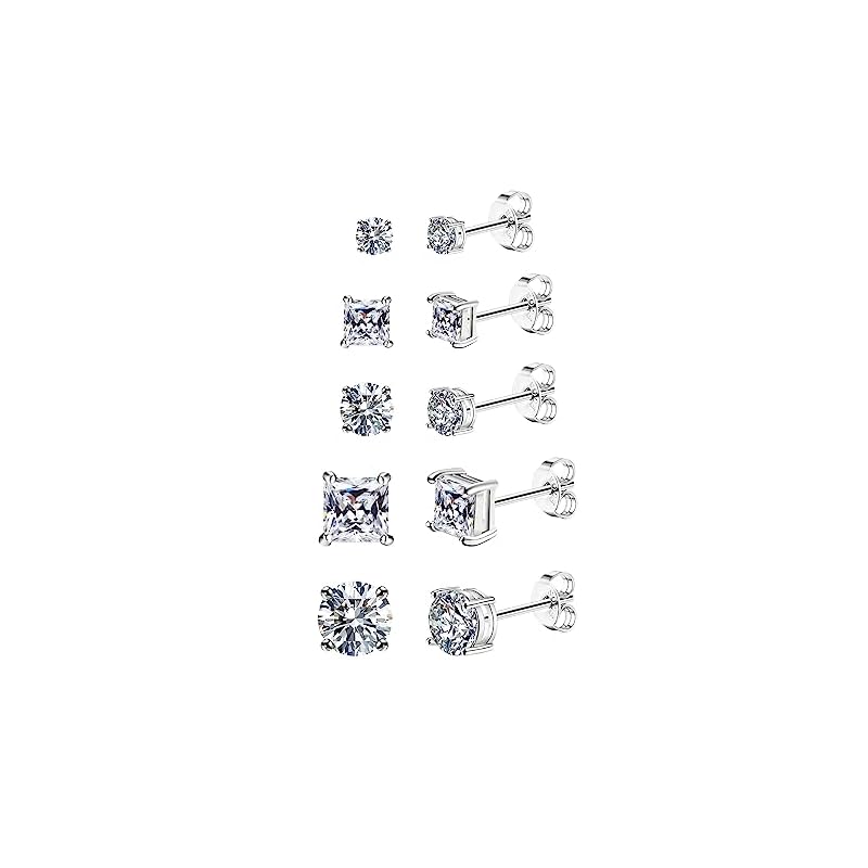 Especificaciones: Dochais Pendientes de plata de ley para hombre, 5 pares de aretes de plata 925 con diamantes para hombres y mujeres, aretes redondos y cuadrados de circonita cúbica, aretes para hombre,