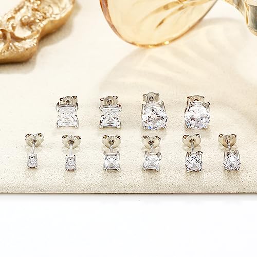 Dochais Pendientes de plata de ley para hombre, 5 pares de aretes de plata 925 con diamantes para hombres y mujeres, aretes redondos y cuadrados de circonita cúbica, aretes para hombre,