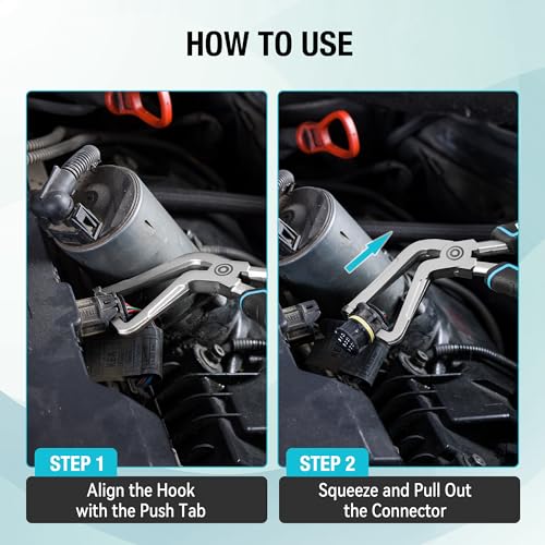 Ajuste de varios tamaños: estos alicates de conector son ideales para desconectar conectores de automóviles en sensores, como sensores de flujo de aire masivo, inyectores de combustible, bobinas de encendido y más. Con un ancho de apertura natural de 1.35 pulgadas, se adaptan a varios tamaños de conectores