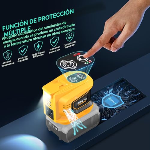▶Compatible con: el inversor de batería para baterías de iones de litio DeWalt 18 V/20 V MAX (por ejemplo, DCB206, DCB205, DCB204). Este inversor de potencia convierte rápidamente las baterías en un cargador portátil, eliminando la necesidad de voluminosos adaptadores. Garantiza la alimentación continua de diversos dispositivos durante cortes de electricidad o viajes.