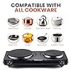 Elite Gourmet EDB-302BF# Quemador de hierro fundido doble para encimera, placa eléctrica de 1500 vatios, controles de temperatura, luces indicadoras de alimentación, fácil de limpiar, negro
