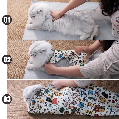 Envoltura para gatos para aseo: no se necesitan pasos de uso complicados; nuestra envoltura de aseo para gatos simplemente envuelve a tu gato para evitar eficazmente que se escapen y se rayen. Esto le permite disfrutar de una experiencia conveniente sin precedentes al recortar las uñas, arreglar o administrar medicamentos. Incluso los principiantes de mascotas pueden manejar fácilmente las difíciles tareas del cuidado de los gatos