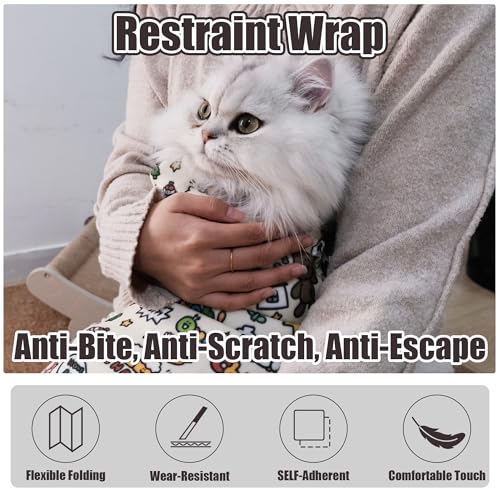 Envoltura multifuncional para gatos: esta envoltura para gatos es adecuada para recortar uñas, cepillarse los dientes, alimentar, limpiar los oídos, administrar inyecciones y más, esencialmente satisfaciendo todas las necesidades diarias de aseo de su gato. Le ahorra tiempo y dinero en servicios de aseo de mascotas. Su tamaño adecuado y diseño ligero lo convierten en la mejor opción para el cuidado diario de los gatos
