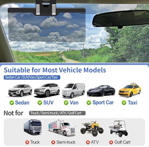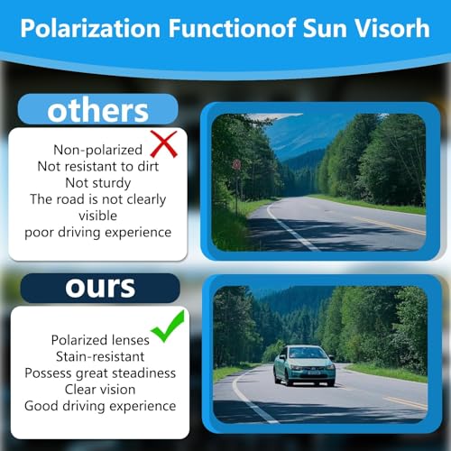 Ajuste universal: con un diseño universal, este extensor de visera polarizada es compatible con la mayoría de marcas y modelos de automóviles. Mide 13.77 pulgadas de largo x 6.29 pulgadas de ancho, ofrece una protección solar completa sin problemas.