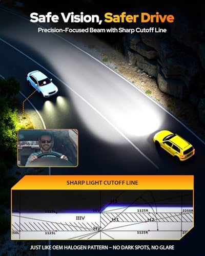Tamaño halógeno real 1:1: diseño de ajuste perfecto: diseñado para adaptarse perfectamente al tamaño original de la bombilla halógena, asegurando un ajuste perfecto con la carcasa de tu vehículo. No se requieren adaptadores ni modificaciones adicionales: simplemente retira las bombillas viejas y conecta las nuevas para una actualización instantánea.