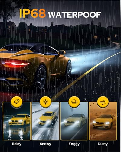 Resistente al agua IP68 y rendimiento duradero: construido con materiales de alta calidad y tecnología impermeable avanzada, estas bombillas soportan condiciones climáticas extremas. A prueba de polvo, golpes y resistente al calor para un rendimiento duradero y una salida de luz estable incluso en lluvia fuerte o nieve.
