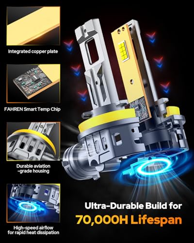 Instalación rápida: Plug and Play verdadero: disfruta de un proceso de instalación simple y sin herramientas. El diseño compacto del cuerpo permite un reemplazo rápido en cuestión de minutos. Compatible con enchufes H11, H8 y H9, se adapta a la mayoría de los modelos de vehículos sin esfuerzo.