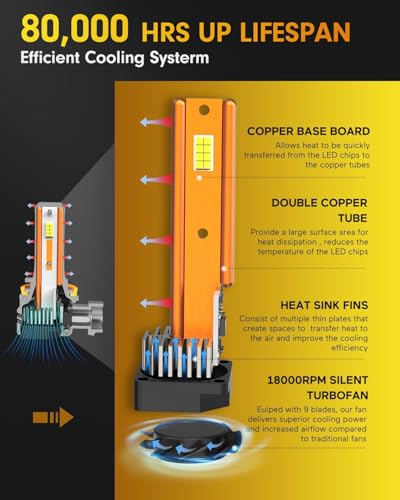 Sistema de refrigeración triple: más de 80.000 horas de vida útil e impermeabilidad IP68: las bombillas LED FAHREN H11/H8/H9 cuentan con un sistema de enfriamiento triple: aluminio de grado aeronáutico, tubos de calor de cobre duales y ventilador silencioso, disipando el calor un 900% mejor que los modelos de plástico. Tit está prohibido publicar o vender productos que no cumplan con todas las leyes aplicables. Con más de 80,000 horas de vida (durabilidad de 10 años) y una pérdida mínima de brillo, las bombillas LED FAHREN H11/H8/H9 son una actualización duradera que omite reemplazos frecuentes.