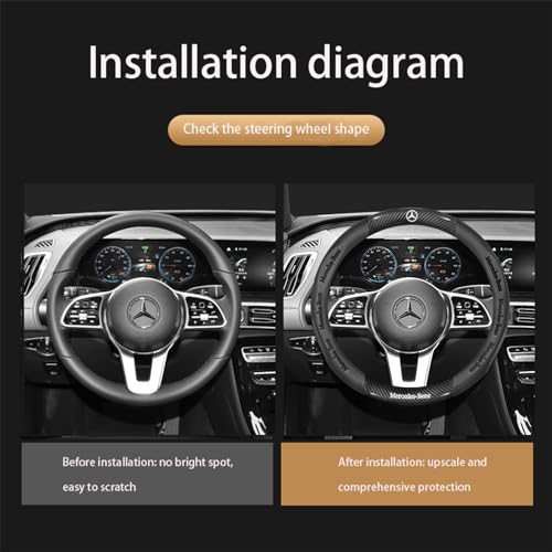 Especificaciones: fCar – Funda para volante de fibra de carbono de alta calidad, antideslizante, transpirable, accesorios de moda con logotipo del automóvil, accesorios para Be (nuevo-negro-Ben)