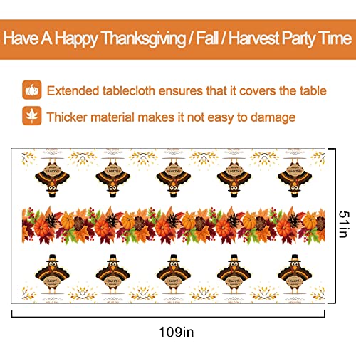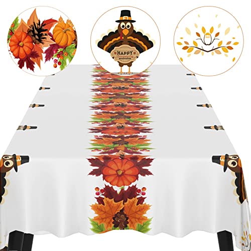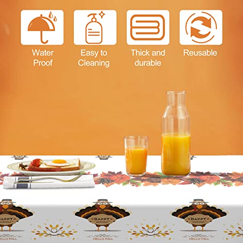 Fibevon Mantel de Acción de Gracias, 2 paquetes de 52 x 110 pulgadas, mantel rectangular de plástico de pavo de alta calidad, mantel desechable para decoración de fiesta de Acción de Gracias/cosecha