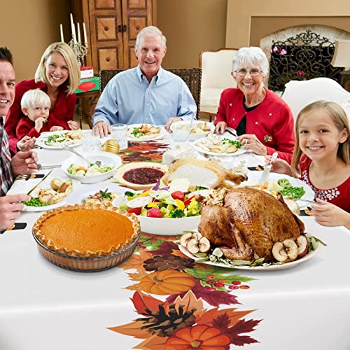 Tamaño y material: paquete de 2 manteles de 52 x 110 pulgadas para Acción de Gracias, se adapta a la mayoría de formas y tamaños de mesas rectangulares. El mantel de plástico otoñal está hecho de plástico de alta calidad, resistente y duradero, a prueba de salpicaduras y resistente al agua, y fácil de limpiar. Mantenga la mesa limpia.
