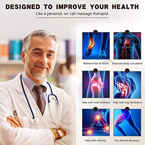 [Fácil de usar]: El mando a distancia era fácil de conectar y utilizar, velcro es muy fuerte y se puede ajustar para satisfacer sus necesidades, incluso los ancianos pueden operar de forma independiente. Usted puede comprar para su padre anciano que necesita mejorar su circulación en las piernas. Es un masajeador de piernas para la recuperación muscular en cualquier lugar, deslice su masajeador de piernas en su bolso de mano y llévelo entre la oficina y el gimnasio con facilidad.