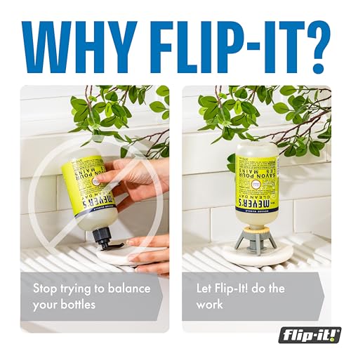 Fácil de usar: Simplemente reemplace la tapa o bomba original de su botella con Flip-It!, póngalo boca abajo y la gravedad hace el trabajo. Abre la válvula y aprieta para dispensarla sin esfuerzo.