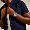 This Fossil chronograph combines rugged stainless steel with a soft leather strap for a strong yet versatile look. It features luminous markers, a date window, and three sub-dials for full chronograph function and accurate timekeeping. Perfect for those searching for big face watches for men, it offers balanced proportions and a slim profile, blending the style of classic field watches with the refinement of dress watches for men. Details like subtle stitching and a polished bezel add a touch of sophistication, making it a great choice for both casual and suit-ready wear.