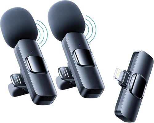 FSZBWL Micrófono inalámbrico para iPhone, micrófono con Clip de Cuello Plug – and – Play, reducción de Ruido/silenciamiento, para transmisión en Vivo, grabación de vídeo, Youtube, vlog