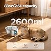 Especificaciones: Fuente de agua para gatos de acero inoxidable: fuente ultra silenciosa para mascotas de 88 oz/2.6 L con boquilla de gatito de flores y dispensador de agua de luz azul LED con ventana de nivel de agua