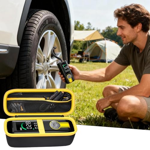 5. La mini funda de viaje para inflador de neumáticos está equipada con un mango resistente y duradero, y es pequeña y ligera, por lo que puedes llevar el inflador de neumáticos ápice en cualquier lugar y en cualquier momento.