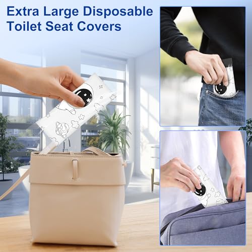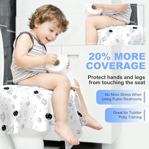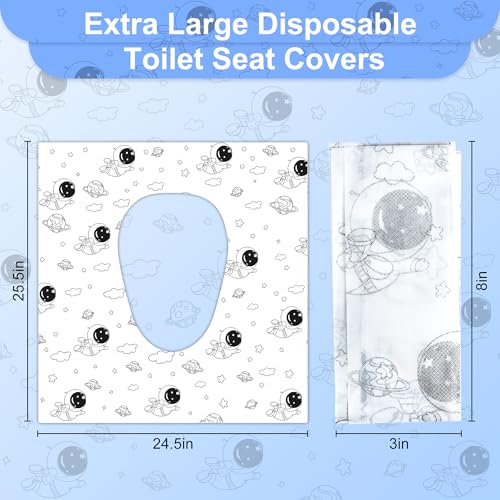 Especificaciones: Fundas de asiento de inodoro desechables extra grandes para niños adultos, cubierta de inodoro impermeable para entrenamiento de orinal de niños, viajes, baño público, avión, tema espacial