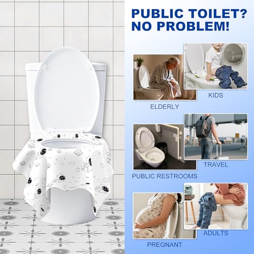 Fácil de transportar y usar: cada funda desechable para asiento de inodoro está envuelta individualmente, lo que las hace perfectamente portátiles para viajes, baños públicos, aviones