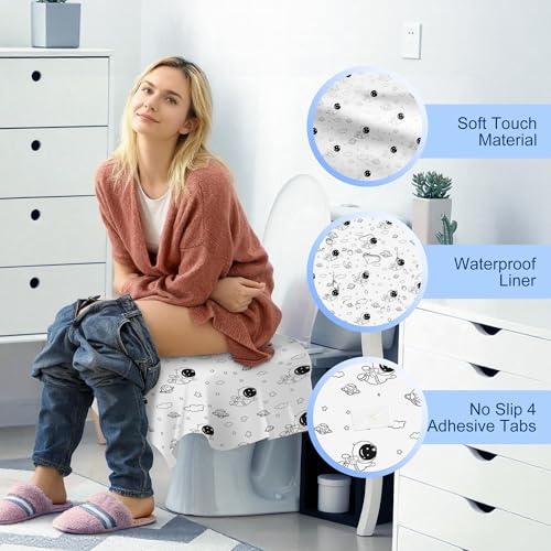 Inconcreto para niños: nuestras fundas de asiento de inodoro para niños son de exploración espacial de dibujos animados, pueden captar su atención, creando un ambiente y sensación seguros y cómodos. Este divertido diseño ayuda a calmar sus miedos de adiestramiento para ir al lavado, convirtiéndolo en una experiencia apacible.