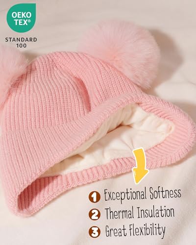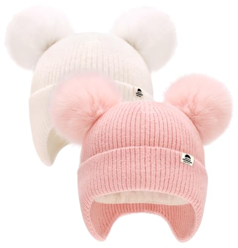 Especificaciones: FURTALK Gorro de invierno para bebés y niños pequeños con pompón, gorro cálido con forro polar para niños