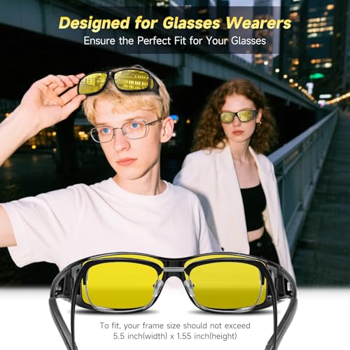 Especificaciones: Gafas de conducción nocturna, lentes de visión nocturna, se ajustan sobre las gafas polarizadas antirreflejos, UV400, regalo para hombres y mujeres