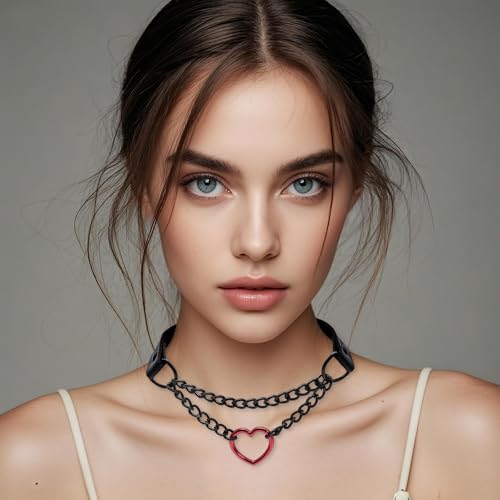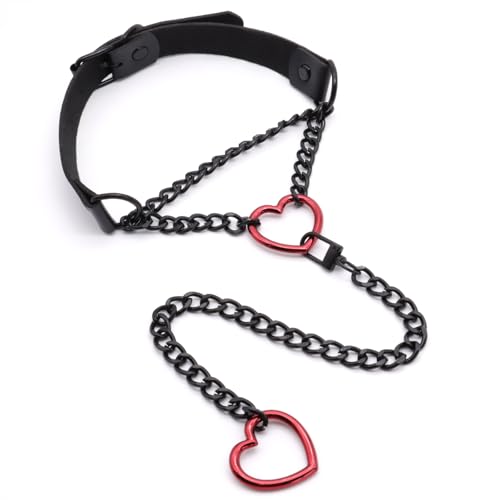 Gargantilla para mujer, gargantilla de cuero negro con corazón gótico, gargantilla gótica punk, cinturón de cadena para mujer, accesorios de moda para Halloween, cosplay