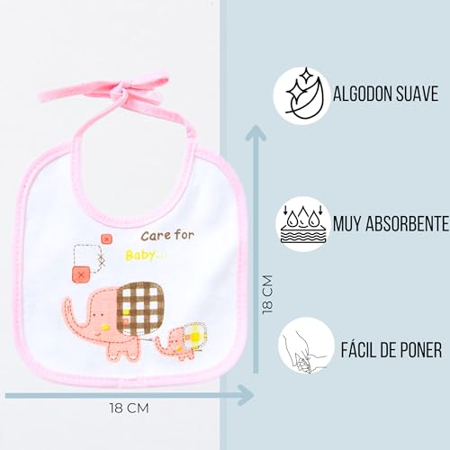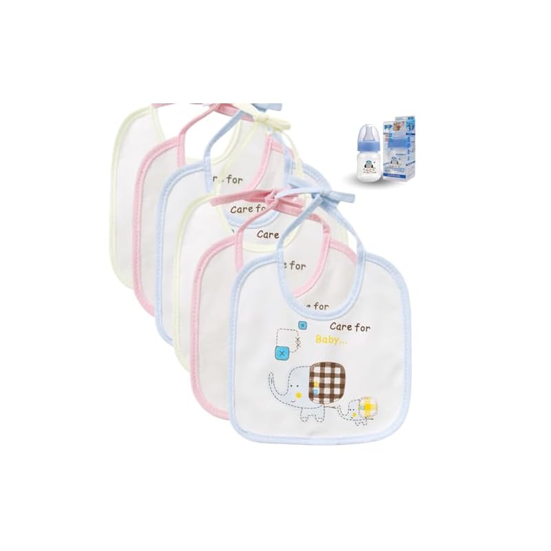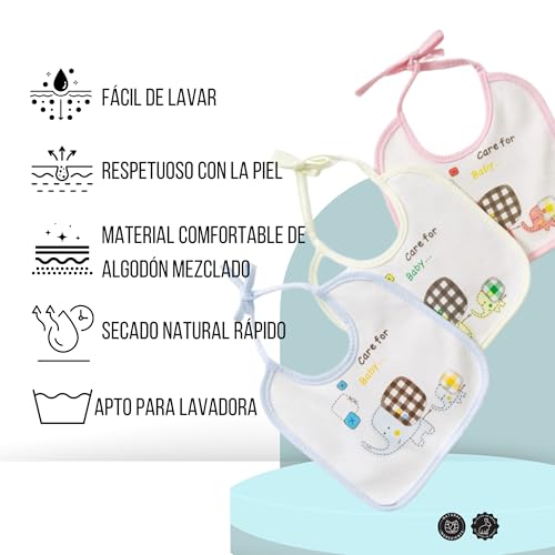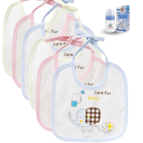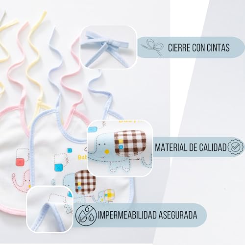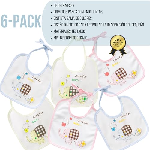 Genérico Pack 6 Baberos Bebe Impermeables de Atar para Bebes de 0-12 Meses de Algodón-Para Recién Nacidos Unisex-Baberos Para Guarderia- Biberón 60ml de Regalo