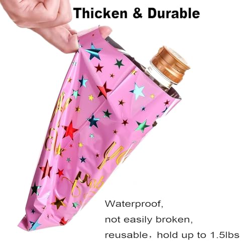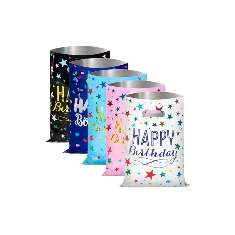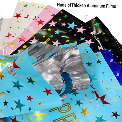 Materiales resistentes y reutilizables de las bolsas de regalos de cumpleaños: con plástico de aluminio confiable en el interior, estas bolsas de golosinas son resistentes, duraderas y reutilizables, soportan hasta 1.5 libras, ideales para envolver regalos y regalos de fiesta. Estas bolsas de regalo de fiesta con asa, a los niños les encantará llevarlas a casa