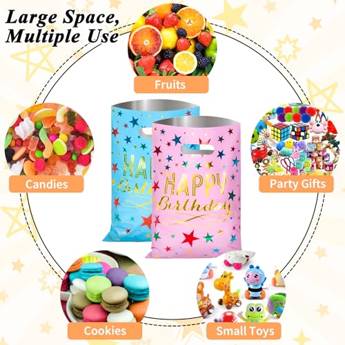 Tamaño de las bolsas de dulces de cumpleaños. Tamaño de las bolsas de dulces de cumpleaños de 6.8 pulgadas de ancho x 9.7 pulgadas de alto, tamaño perfecto para guardar los recuerdos de fiesta para niños, ideal para dulces, nueces, aperitivos, postres dulces, dulces, regalos pequeños, juguetes pequeños o pequeños regalos. Bonita y resistente bolsa para regalo de devolución para niños.