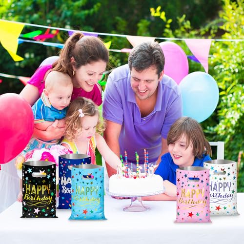 Bolsas de regalo con diseño de patrón colorido: el patrón de bandera estrellada y el diseño de color brillante pueden traer más diversión a las fiestas y son amados por niños y niñas. Es adecuado para fiestas de cumpleaños, fiestas de baby shower, Navidad, Año Nuevo, graduaciones, días de Pascua, etc. Haz de estas bolsas de feliz cumpleaños una opción versátil.