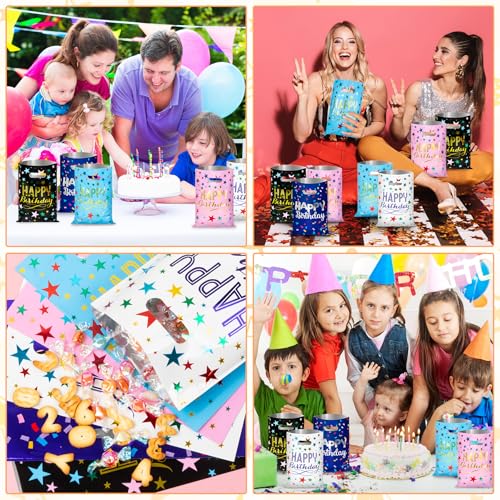 Bolsas de regalo para fiesta de cumpleaños: el paquete viene con 40 bolsas de dulces de cumpleaños, 5 bolsas de regalos de cumpleaños de colores brillantes con 8 piezas en cada color. Esta cantidad de bolsas de regalo de cumpleaños garantiza que tengas suficientes bolsas de regalo para fiestas, eventos o incluso uso diario. Haz que cada celebración sea memorable con estas encantadoras bolsas de golosinas