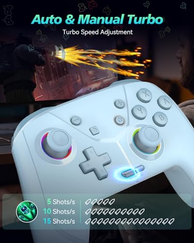 Función de macro en bucle: Primero grabe tu secuencia de botones personalizada (las macros de 30 segundos admiten joysticks, disparadores, D-pad, ABXY y +/-). Luego, mantén presionado Turbo + Macro juntos para iniciar o detener el bucle. El controlador reproducirá tus acciones automáticamente, ideal para moler, agricultura y otras tareas repetidas