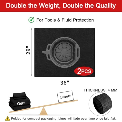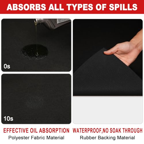 Protección absorbente e impermeable: estas alfombrillas de garaje absorben aceite, líquido de frenos y otros líquidos automotrices, protegiendo el suelo de tu garaje de manchas y fugas. La parte trasera de goma antideslizante e impermeable mantiene la alfombra en su lugar, ideal para usar debajo de automóviles, motocicletas y camiones. Perfecto para tapetes de garaje para debajo del automóvil, tapetes de goma y quitamanchas de aceite de entrada.