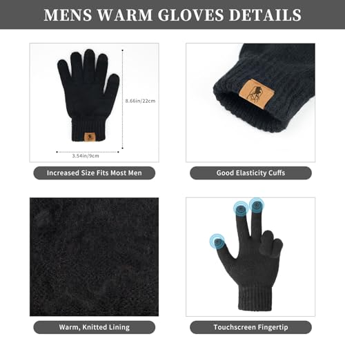 Gorro de invierno para hombre, bufanda de cuello largo y guantes para pantalla táctil, con forro polar, regalos para hombres