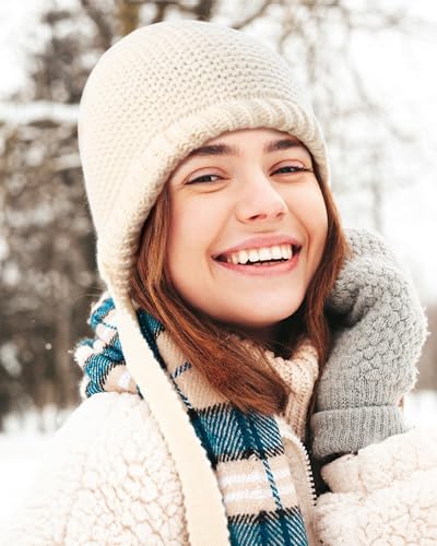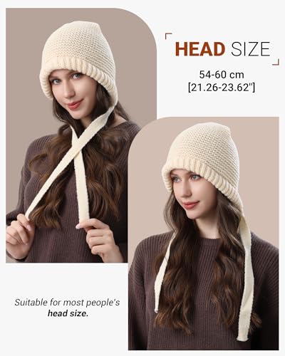 Gorro de invierno para mujer, gorro para mujer con lazos para ajustar, sombrero de invierno para mujer para clima frío