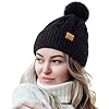 Especificaciones: Gorro de punto de invierno para mujer, suave y cálido, gorro de lana de moda con pompón de esquí