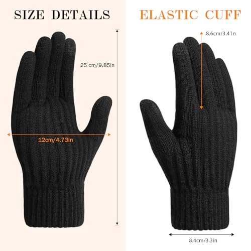 Guantes de invierno para mujer, guantes para clima frío, guantes térmicos para mujer, para pantalla táctil, elásticos, verticales, forro polar, guantes de punto para mujeres y hombres, color