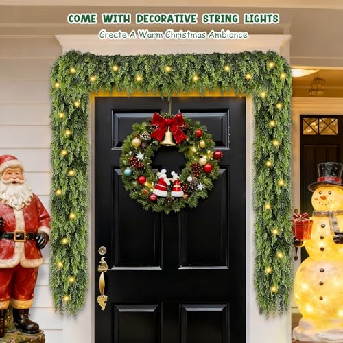 Guirnalda de cedro de Navidad de 9 pies, artificial, realista, suave y gruesa, guirnalda de pino de cedro sintético verde para el hogar, chimenea, interior y exterior, decoración de fiestas