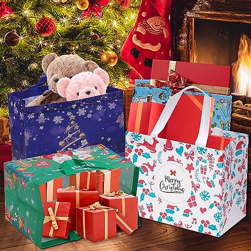 Las mejores bolsas de regalo para las vacaciones de Navidad: estas bolsas de fiesta de Navidad son muy adecuadas para la mayoría de tamaños de empaques de regalo, se puede utilizar para fiestas de Navidad, regalos de vacaciones, embalaje de regalo de botella de vino, regalos grandes, bolsas de regalo de amigos, bolsas de hospitalidad, pueden contener cualquier regalo para Navidad o para niños. También puede poner bolsas de mano utilizarlo como una bolsa de compras para compras de año nuevo