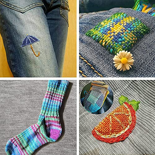 Mini organizadores de telar: función de reparación: el dispositivo hace frente a la reparación de pequeños agujeros en la ropa, puedes crear varios patrones en el diseño. Un área grande se puede reparar rápida y fácilmente. Ideal para zurrir y el arte de los planes de diseño. La apariencia del mini es muy creativa, y el telar de tejido puede hacer que su operación sea más simple y conveniente. Puede usar cualquier colocación de color, para que pueda usar sus ideas para reparar