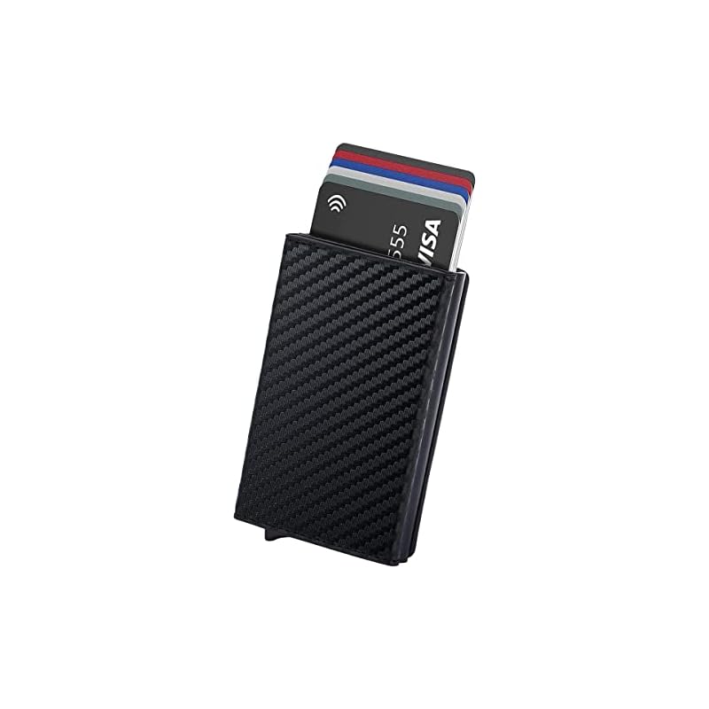 Especificaciones: Hision Tarjeteros para Tarjetas de Credito, Automática Pop-up Billeteras de Protección RFID Cuero Cartera para Hombre y Mujer con Monedero
