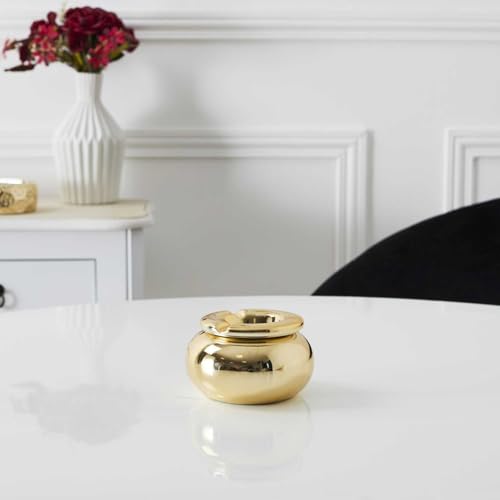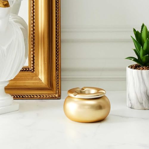 El acabado dorado de este cenicero le da un aspecto lujoso y brillante. Esta elección de color combina perfectamente con varios estilos de decoración, ya sean modernos o tradicionales, agregando un toque de glamour a tu espacio habitable.