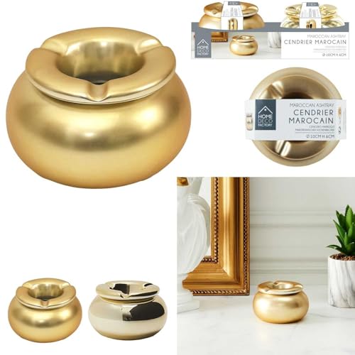 Home Deco Factory, TB1050, Cenicero marroquí, diámetro de 10 cm, diseño y ultra práctico, este cenicero dorado de inspiración oriental lo tiene todo para complacerte, fácil de limpiar